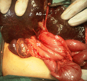 Figure 1: Showing atretic gallbladder (AG); stomach (St)