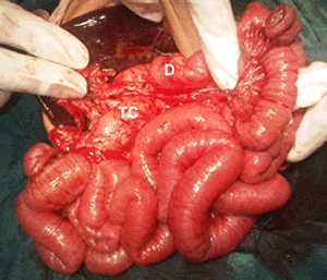 Figure 2: Showing intraperitoneal duodenum (D) and
