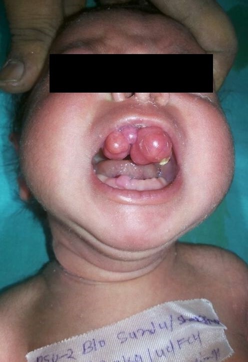 Saki N, Araghi S. Multiple congenital epulis in alveolar ridges of maxilla and mandible in a newborn: a rare case report. Case Rep Otolaryngol. 2014; (2014), p. 606985.